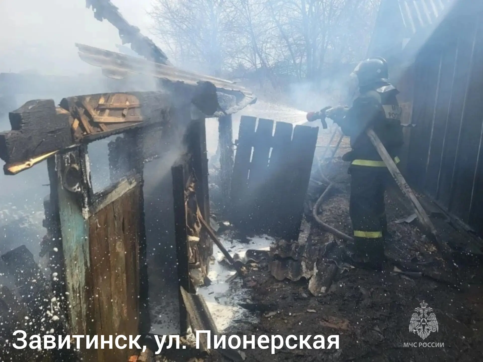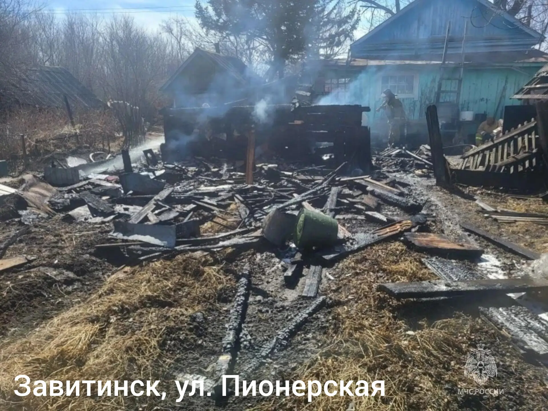 в Завитинске на ул. Пионерской горели две рядом стоящие хозяйственные постройки. Пожар на 20 квадратных метрах потушили 3 боевых расчета. Пострадавших нет;
