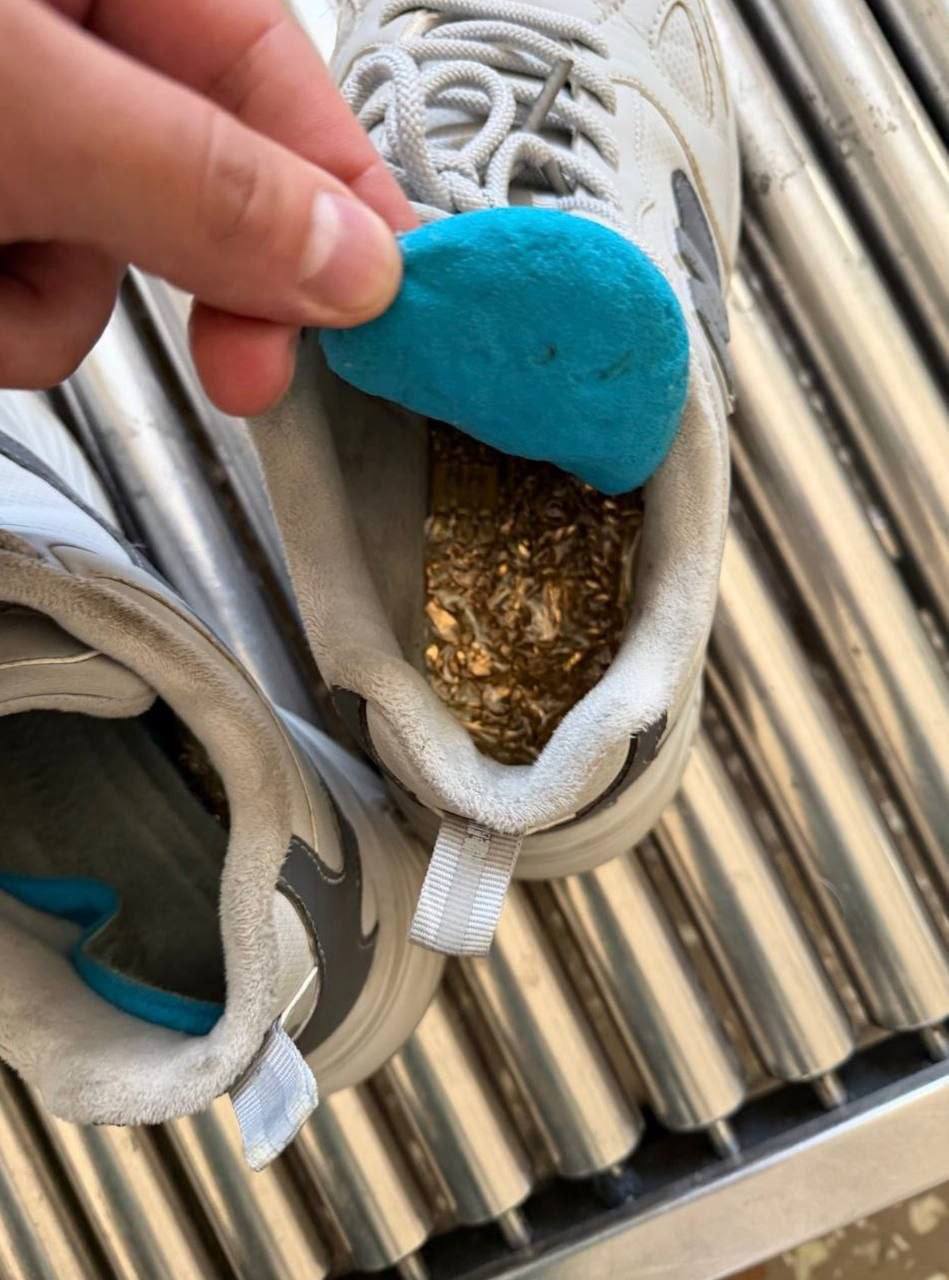 Металлодетектор сработал на лом ювелирных изделий, спрятанный злоумышленником под стельками кроссовок.