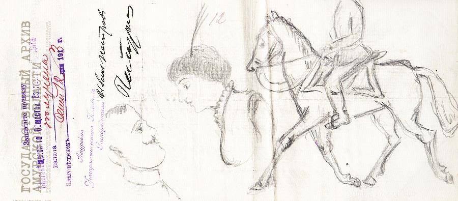 Недавно, при исследовании исторических документов, хранимых в фонде И-9 «Благовещенский сиротский суд», была обнаружена уникальная коллекция графических изображений начала XX века. Документы фонда за 1913 год оказались дополнены рисунками неизвестного автора.