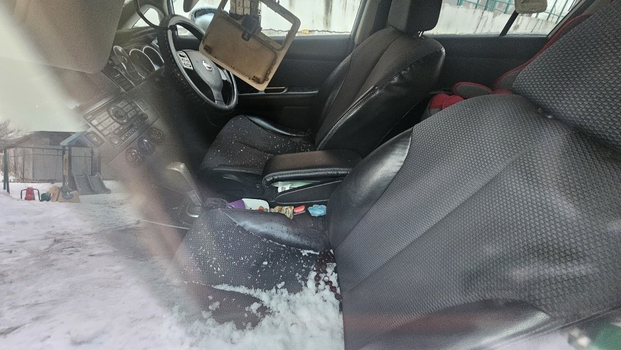 На фотографиях с места происшествия видно разбитое лобовое стекло и снег внутри салона машины: https://asn24.ru/~N4bTq