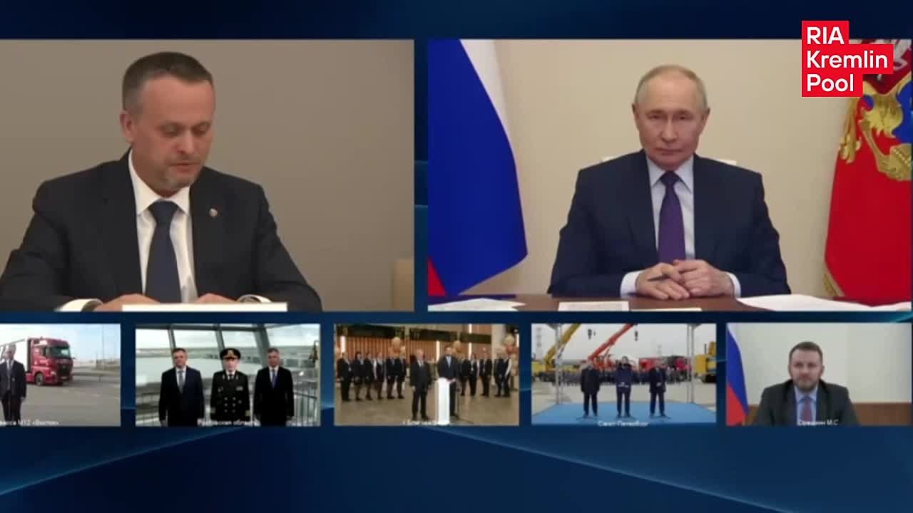 Путин запустил движение беспилотных грузовиков по трассе М-12, открыл новый терминал аэропорта в Благовещенске и Багаевский гидроузел на реке Дон, а также дал старт строительству магистрали в Санкт-Петербурге
