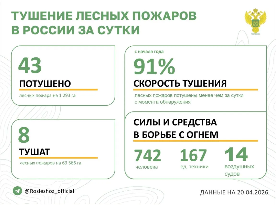 Оперативность тушения - с начала года 91% всех лесных пожаров ликвидированы менее чем за сутки с момента обнаружения.