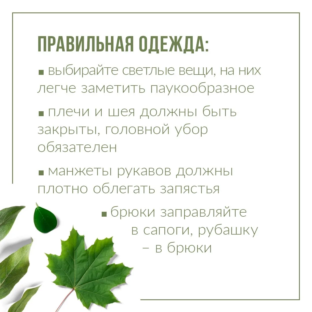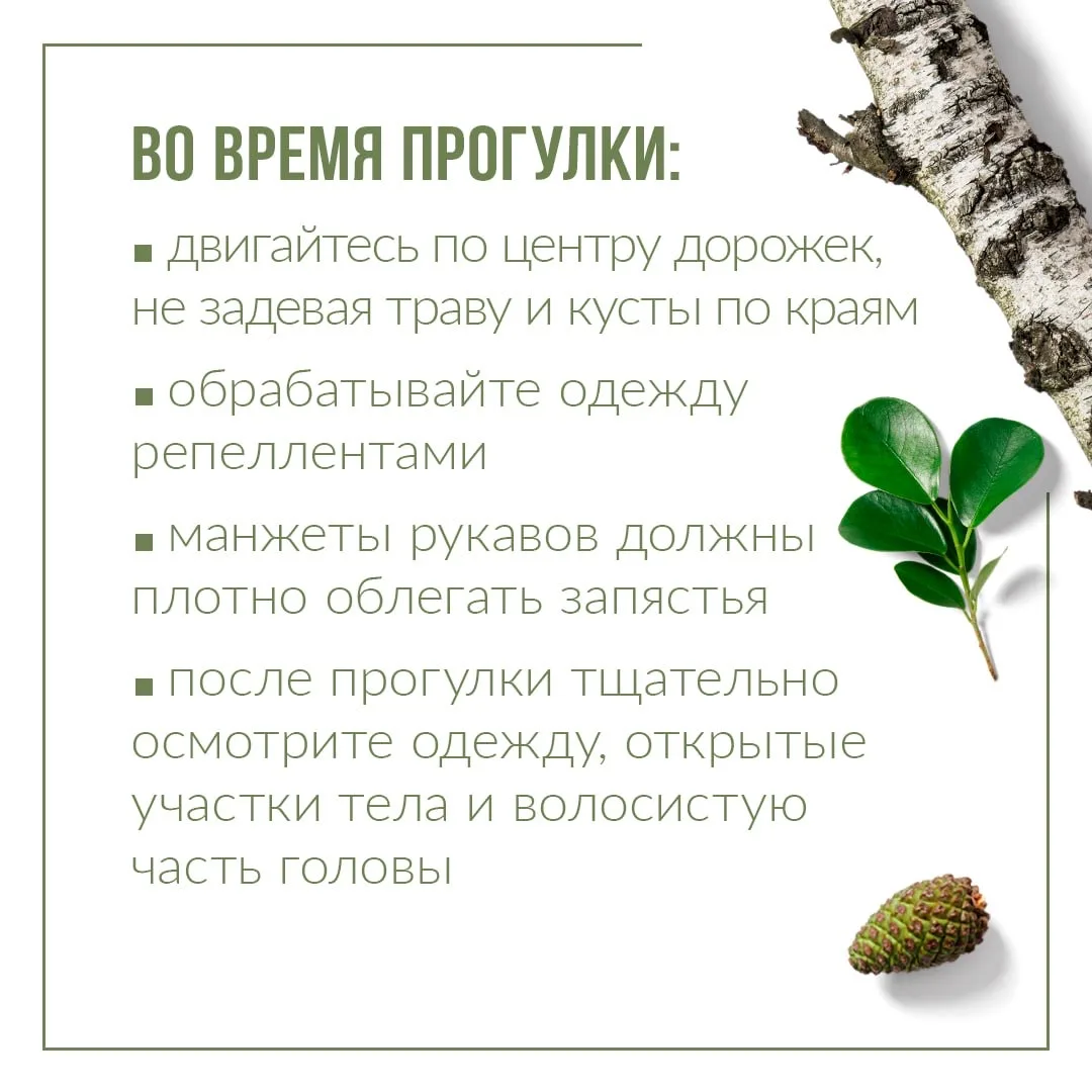 Также во время активности клещей специалисты рекомендуют соблюдать меры профилактики. Какие – собрали в карточках
