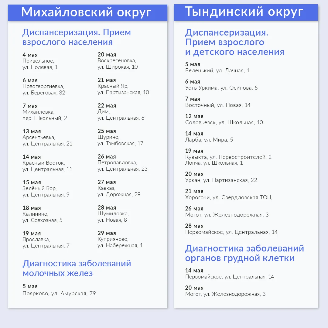 В ПМК амурчане проходят диспансеризацию и профосмотры, флюорографическое и маммографическое обследование, а также получают помощь врачей узких специальностей.