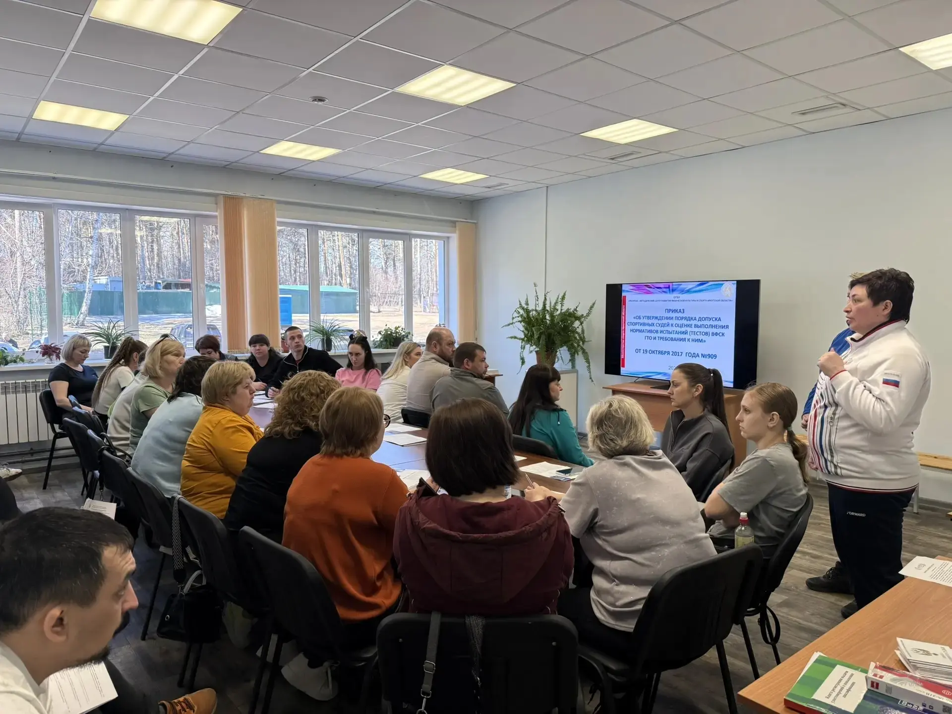 Специалисты ОГБУ «Ресурсно-методический центр развития физической культуры и спорта Иркутской области» 27-28 апреля провели выездные курсы повышения квалификации по программе: «Подготовка спортивных судей главной судейской коллегии и судейских бригад физкультурных и спортивных мероприятий Всероссийского физкультурно-спортивного комплекса «Готов к труду и обороне». Обучение проводилось в конференц-зале стадиона «Шахтер» имени В.С. Белика.