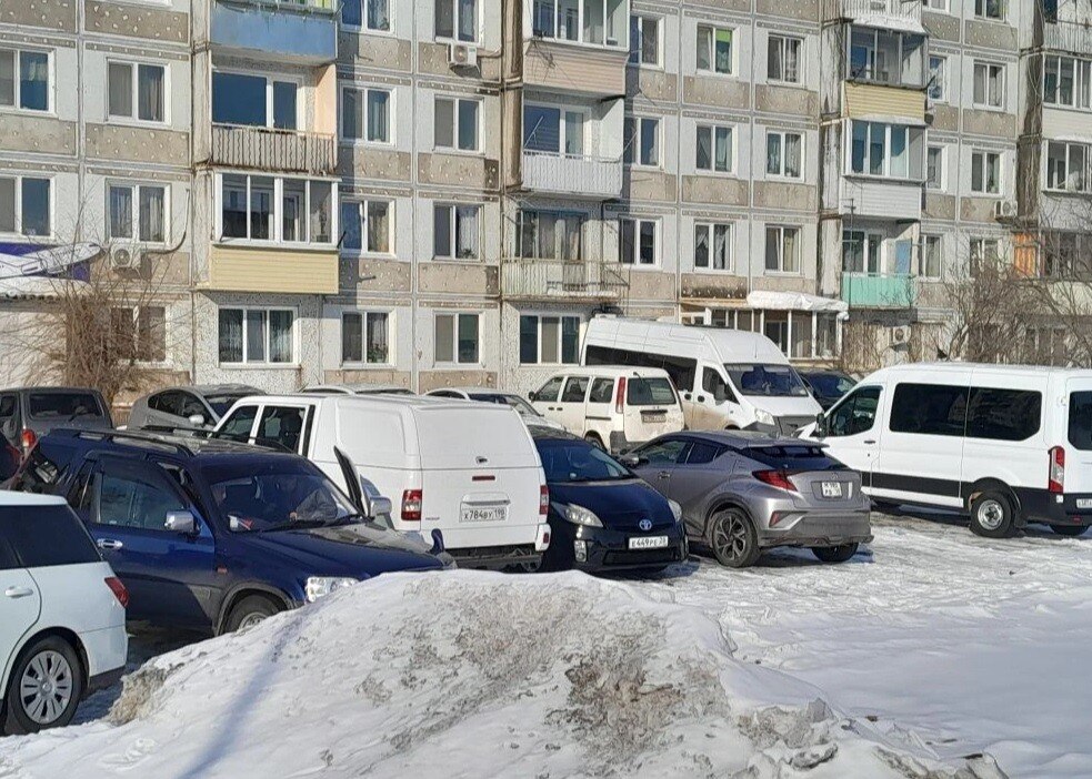 На фото, которыми они поделились с журналистами, заставленная придомовая территория. Помимо легковых авто, здесь оставляют пассажирские микроавтобусы, и нередко высаживают пассажиров таксисты.