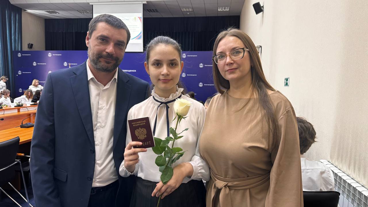Родители отметили, как необычно и как важно получать первый паспорт не просто в отделении полиции, а в торжественной обстановке, когда детей могут поздравить и они сами, и учителя, и представители избирательных комиссий, УФМС, других органов власти. К слову, вместе с паспортами школьники получили в подарок по экземпляру Конституции РФ, девушкам вручили цветы. Среди приглашенных была семья Лошаковых из Благовещенского округа, в которой младшая дочь Виктория сегодня тоже получила первый паспорт.