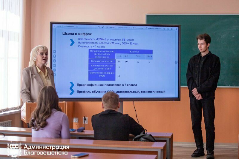 17 марта в Благовещенске состоялась встреча участников кадрового проекта. Среди них были ректор и начальник центра профориентации и содействия трудоустройству БГПУ, представители управления образования города, будущий директор новой школы Лариса Шишкина и 24 студента педуниверситета, заинтересованные в этой работе. Всего же для работы в новом учреждении потребуется более 80 педагогов.