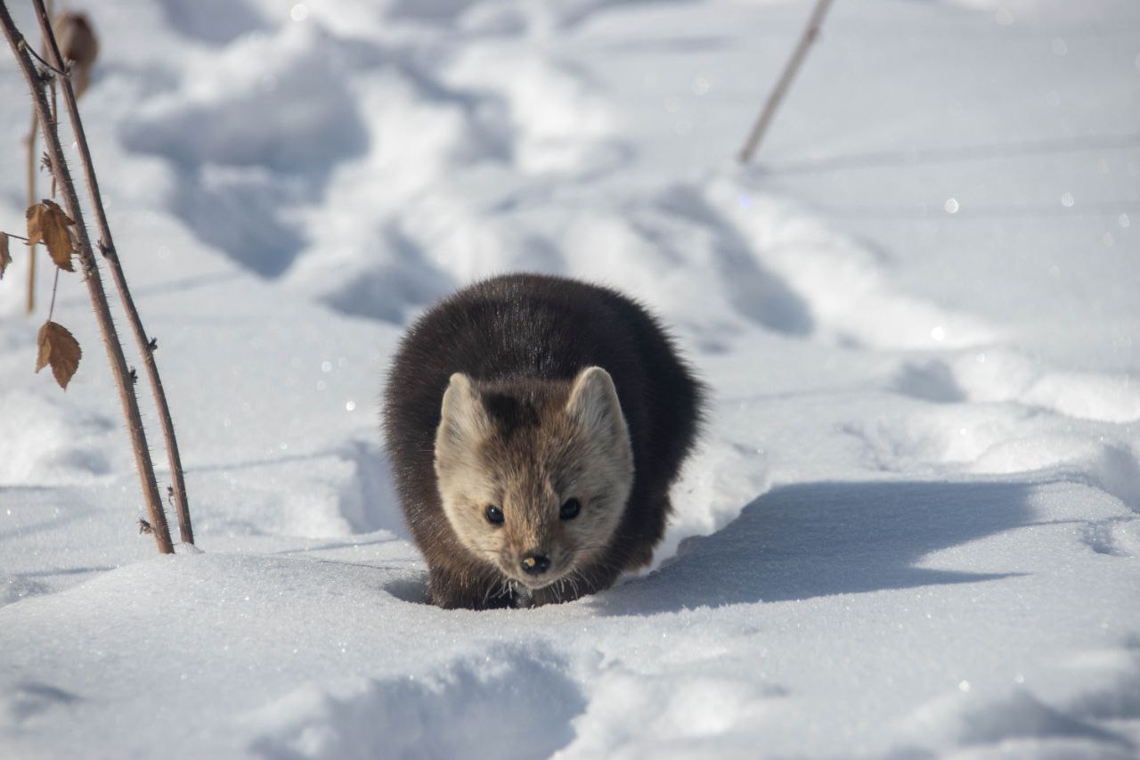Видите эти пушистые лапки? К зиме они обрастают жестким мехом так сильно, что площадь опоры увеличивается вдвое. Соболь не проваливается в сугроб, а буквально «летит» по нему, как на лыжах.