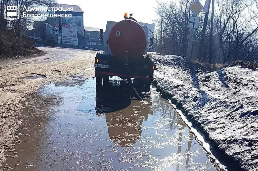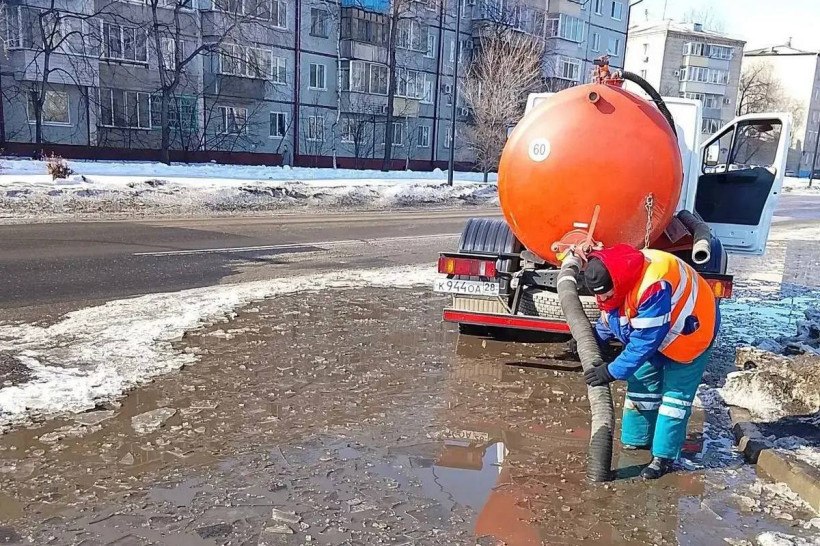 В межсезонье с улиц Благовещенска коммунальщики откачивают до 40 тысяч литров талых вод за смену
