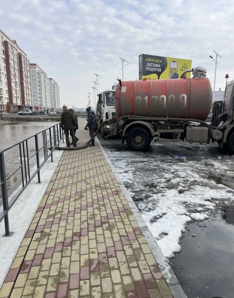 Администрация округа направила вакуумные машины для откачки талой воды, а также рабочих для пропарки замороженных мест.