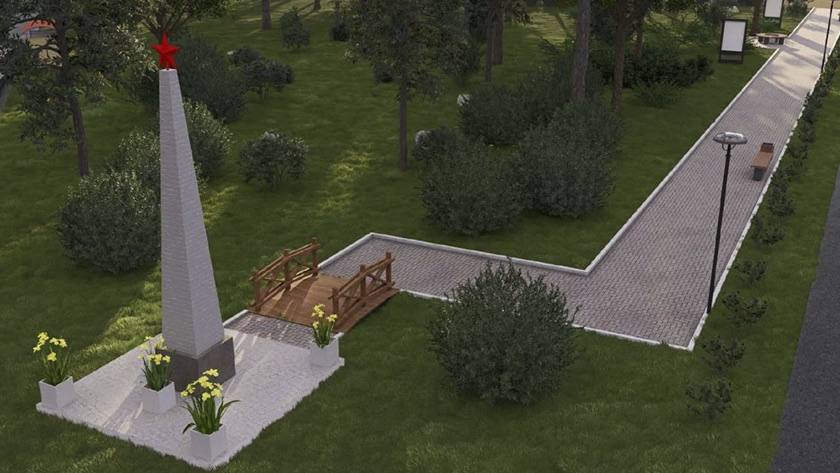 На участке по улицы Победы сделают пешеходную дорожку с покрытием из плитки, поставят скамейки и урны, проведут освещение и разместят информационные стенды.