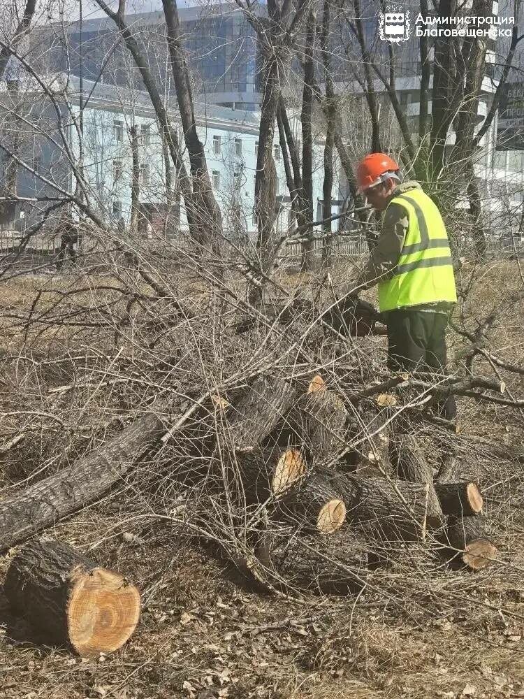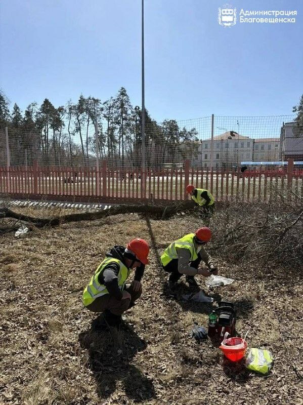 30 марта в Благовещенске на территории Алексеевской гимназии началась подготовка к установке нового забора. Рабочие спиливают сухостойные деревья, которые растут близко к ограждению.