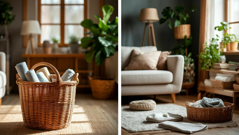 Сложите обувь в аккуратные пары, уберите пакеты и лишние вещи в другие комнаты или в корзину для белья. Не забудьте про пледы — сверните их и положите на диван. И не стоит сейчас пылесосить или мыть пол; широта и опрятность пространства — вот что имеет значение в данный момент.