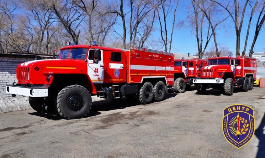 Среди поступивших машин — две автоцистерны на базе «Урал-4320» (каждая на 7 тонн воды) и две на базе «Урал-5557» (по 6 тонн воды).