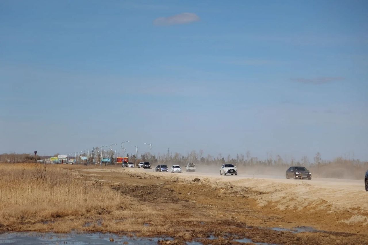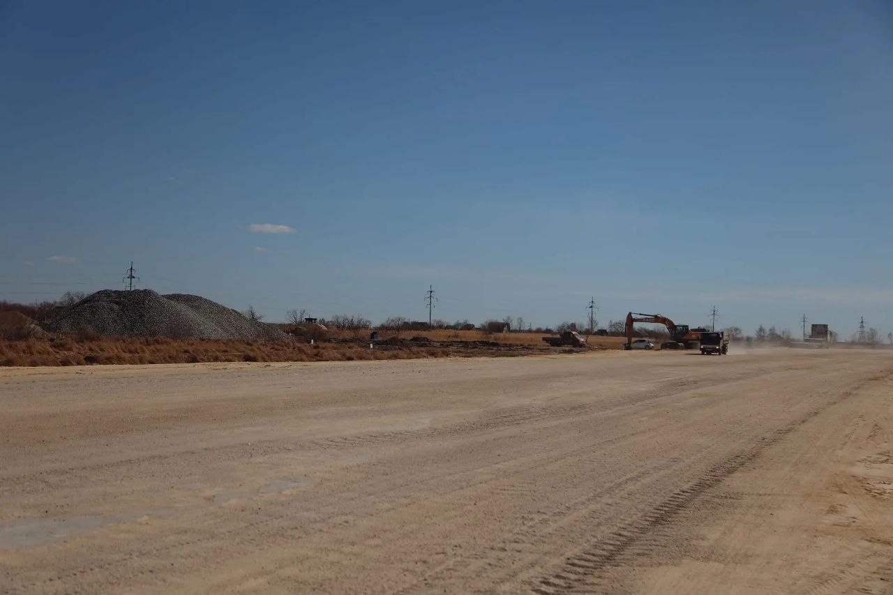 На сегодняшний день подрядчик уже произвел работы по замене грунта, идет устройство трубопроводов, разработка и отсыпка земляного полотна. В ближайшее время завершится планировка откосов.