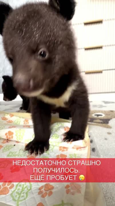 Сотрудники парка «Земля Прайда» просят: «Испугайтесь, пожалуйста, не расстраивайте медведя». Он старается нападать, но ему всего 2,5 месяца, и он еще плохо держится на ногах.