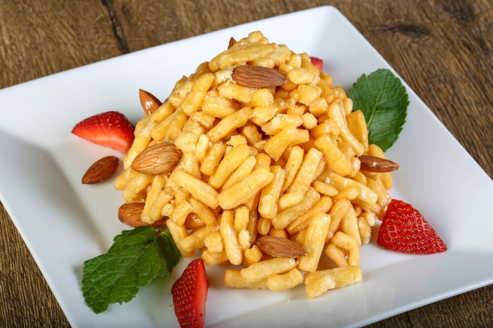 - Заправка: Медово-горчичная придаёт легкую остроту и сладость, в то время как соус дор-блю добавляет кремовость и насыщенный аромат.