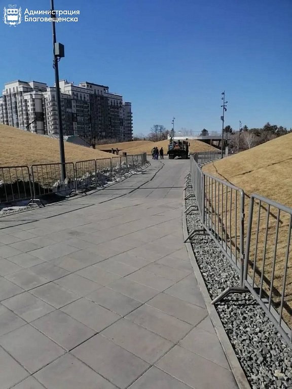 В Благовещенске временно закрыли доступ на холмы в районе «Трибуны Холл» на набережной. Территорию огородили леерами, чтобы спасти газон от вытаптывания.