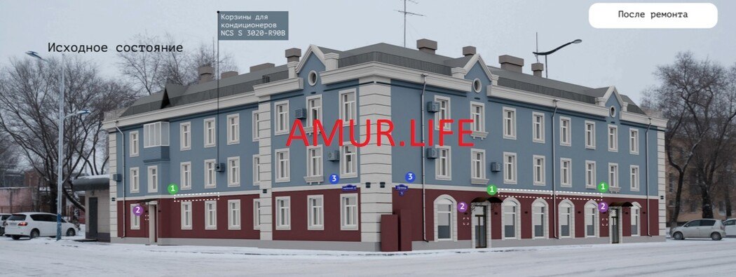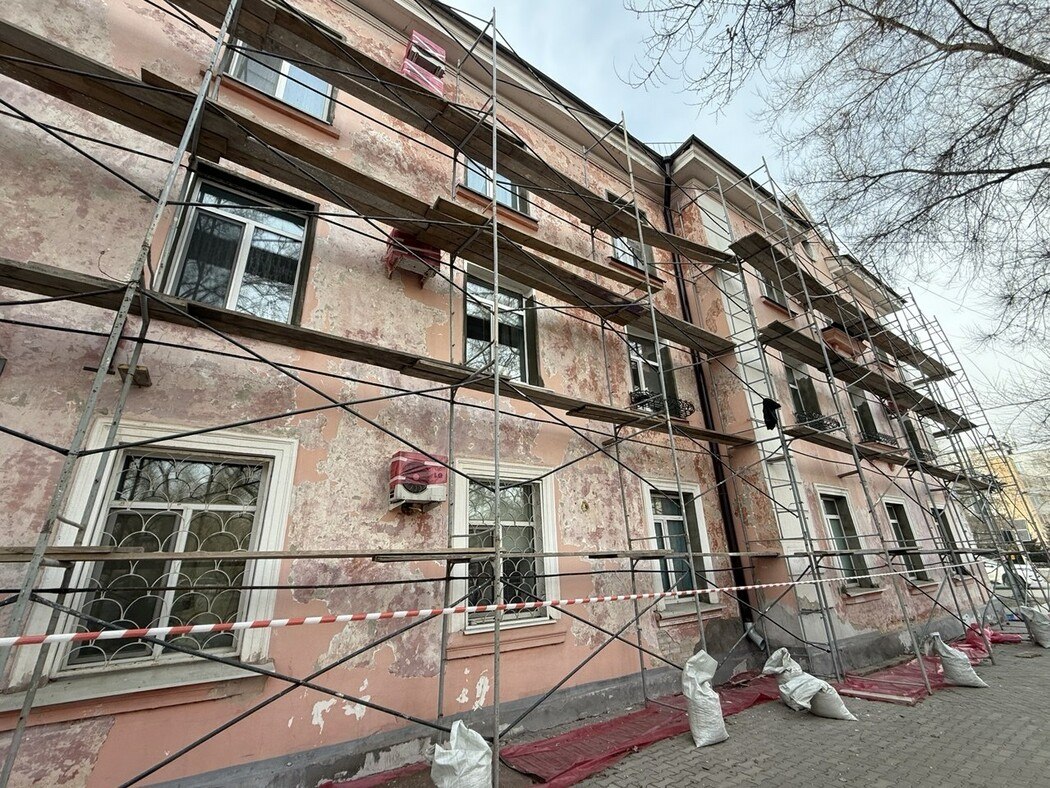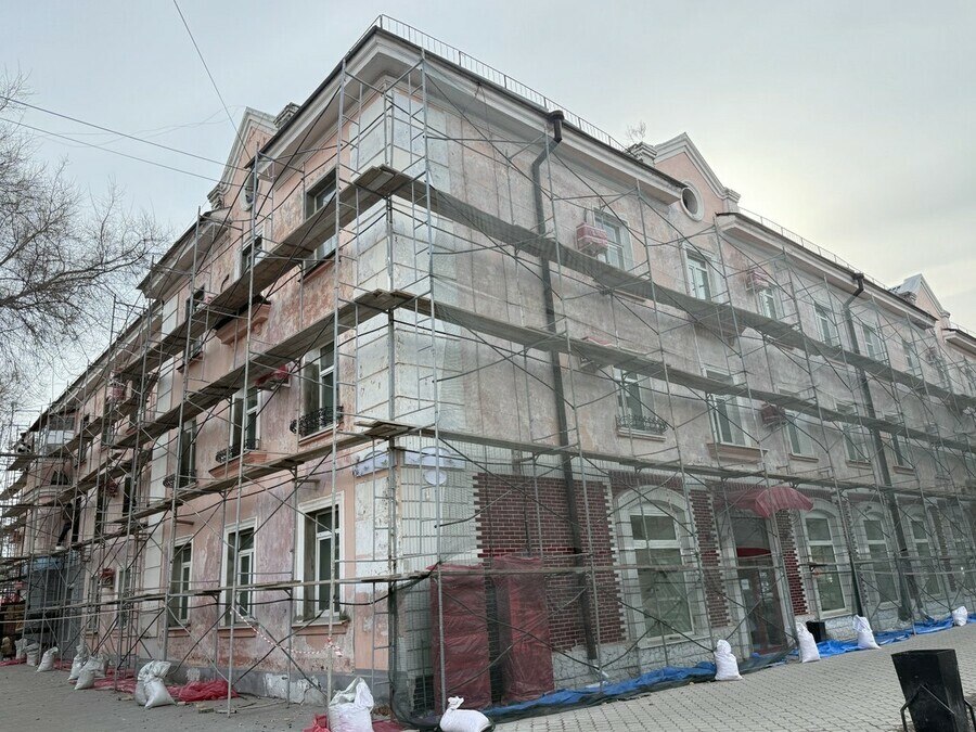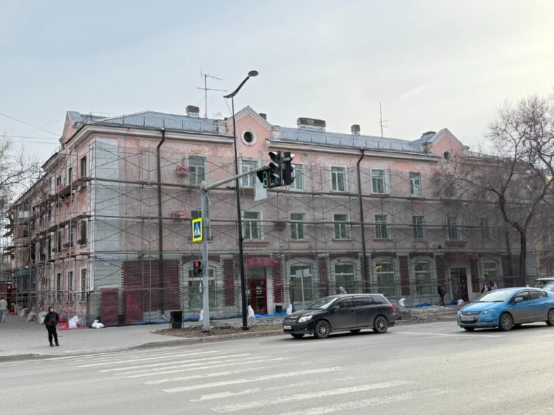 В Благовещенске фасад очередного жилого дома приводят в порядок за бюджетный счет. Недавно стартовали работы по ремонту дома 76 на улице Ленина.