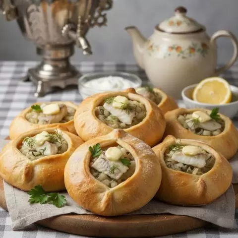 Расстегаи – это настоящая гордость русской кухни. Эти открытые пирожки радуют своим многообразием начинок и неимоверной сочностью. Особое внимание стоит уделить их аромату, который, словно магнит, притягивает к столу.