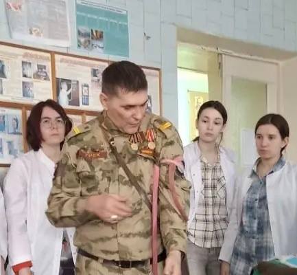 Ветеран СВО Анатолий Шанин провел 2 встречи: со студентами Амурской государственной медицинской академии и с младшеклассниками лицея № 11 г. Благовещенска — участниками движения «Юнармия». На мероприятиях Анатолий рассказал о своем боевом пути, поделился своими мыслями о любви к Родине. Также провел занятия по оказанию первой помощи в полевых условиях. В завершении прочитал собственные стихотворения о событиях СВО.