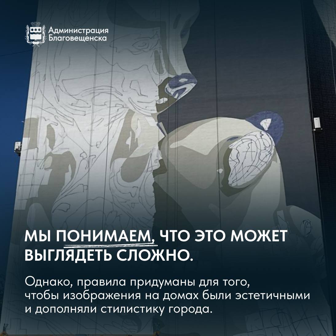 Создание муралов на фасадах зданий без разрешения запрещено. Согласованный мурал — это безопасно и он обязательно будет радовать жителей и гостей города.