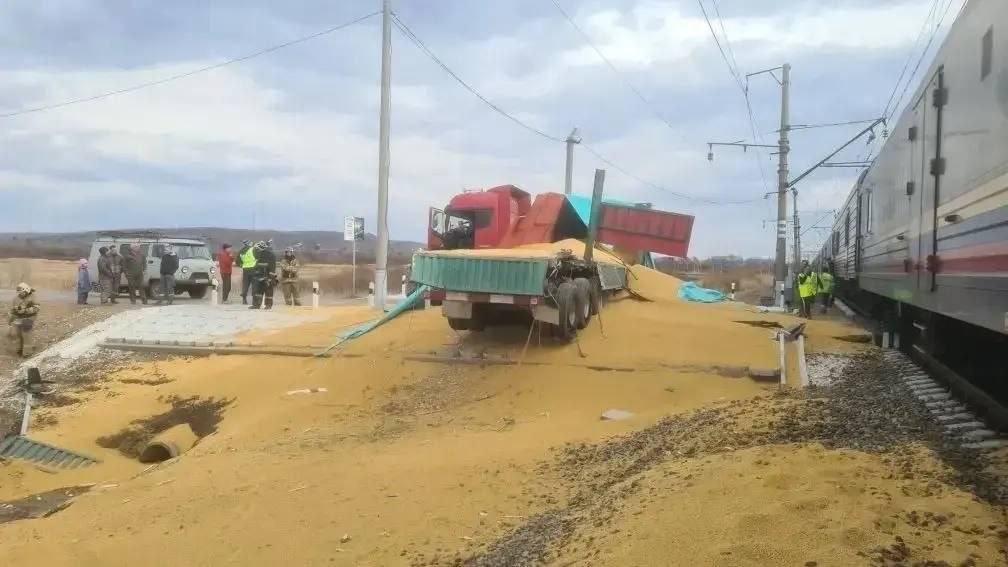 Сегодня, 12 апреля, в 17:25 на железнодорожном переезде станции Архара почтово-багажный поезд «Владивосток-Москва» врезался в грузовик.