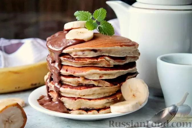 - Банановые панкейки с шоколадом — это не просто завтрак, а настоящее лакомство! Нежное тесто с бананами сочетает в себе сладость шоколадных кусочков, создавая идеальный дуэт.
