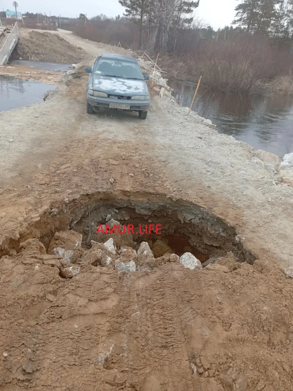 В селе Светильное Шимановского округа жители рискуют оказаться отрезанными от остального мира. Там разрушается единственная дорога, по которой они могут выехать из населенного пункта и вернуться обратно.