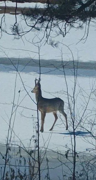 Самец косули позировал охотоведам на льду реки Ульмы Мазановского округа. И не зря – фотосессия получилась неплохая.
