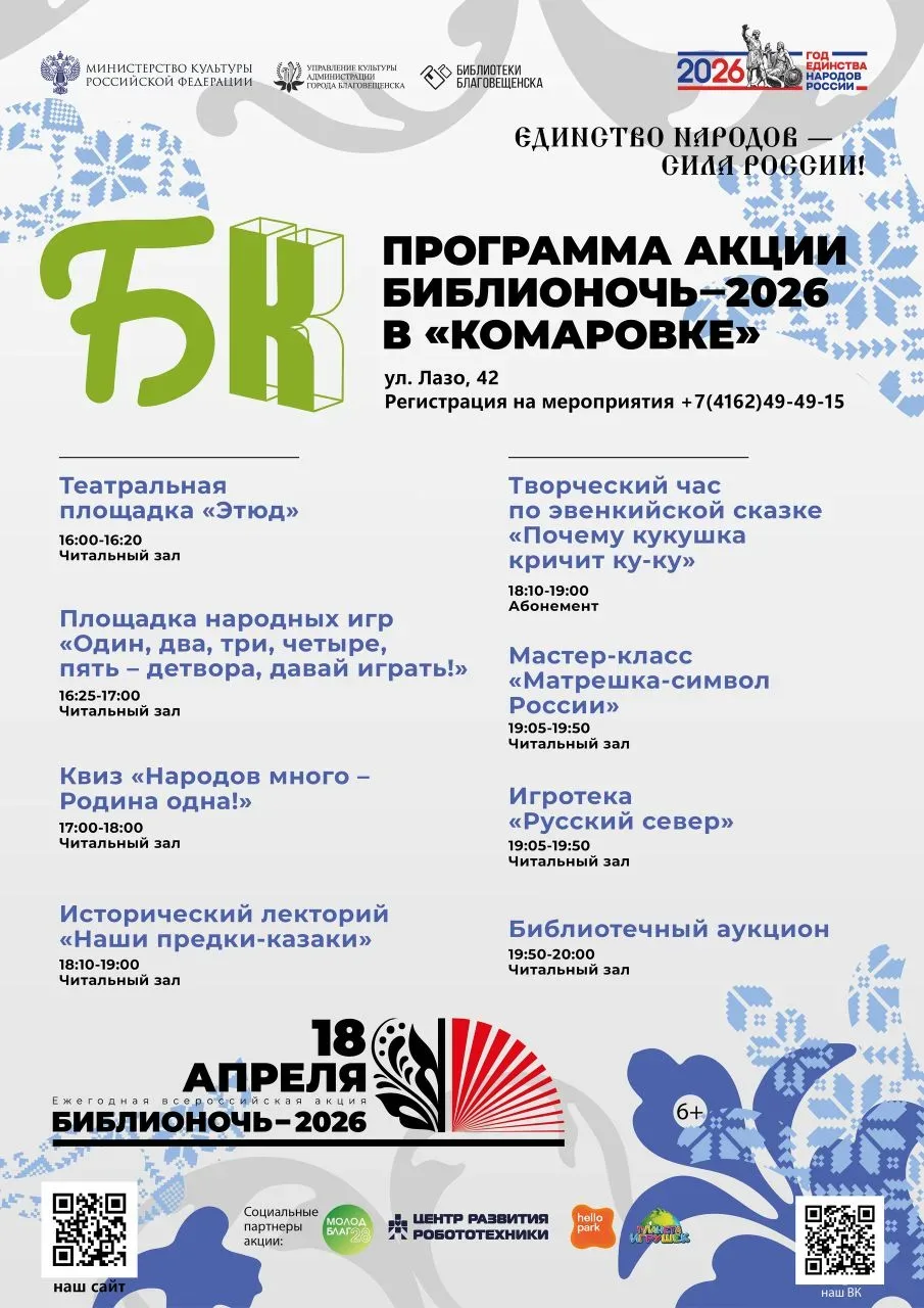 Тема «Библионочи» — «Единство народов — сила России». Гостей акции ждут: