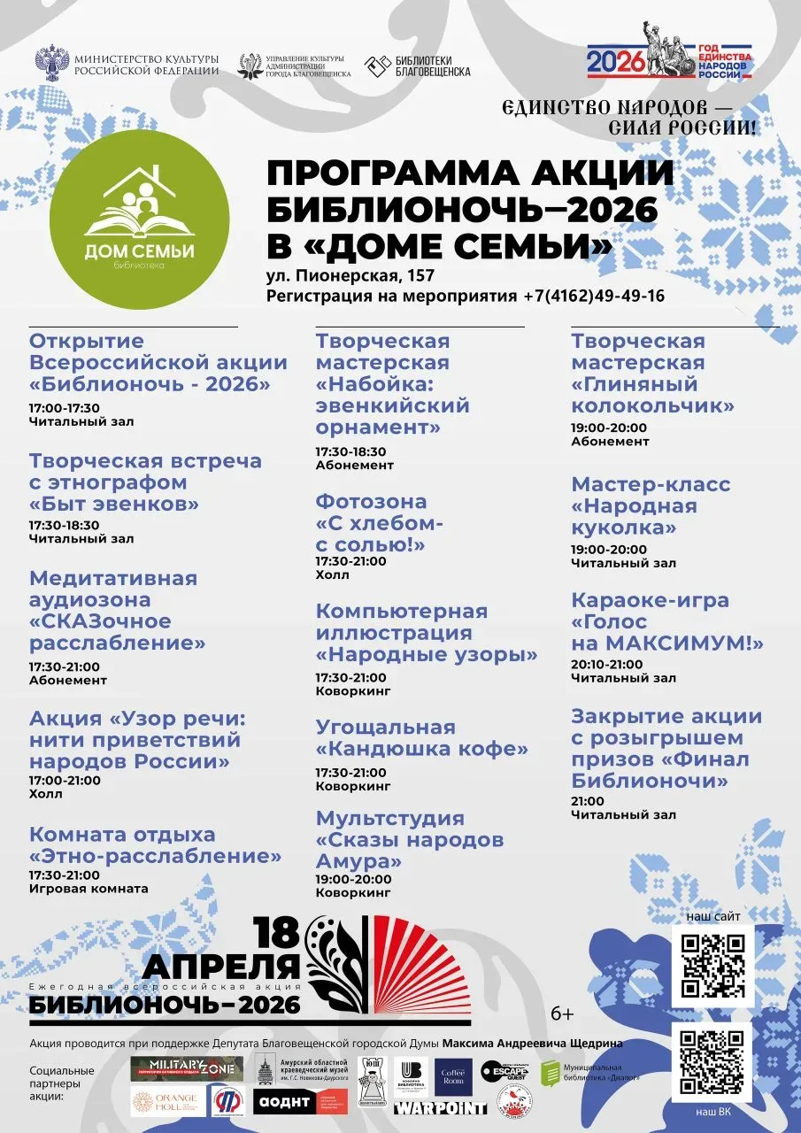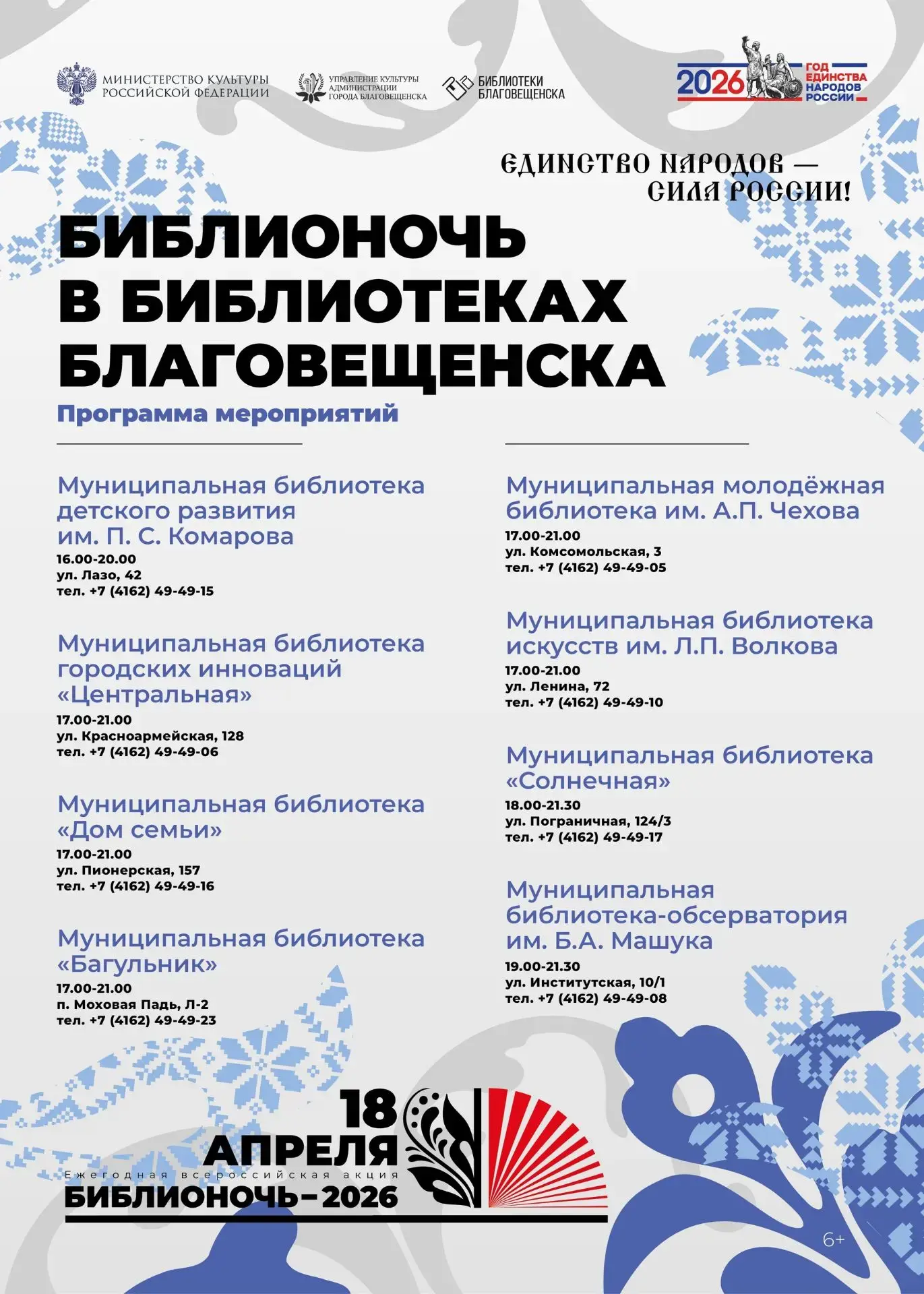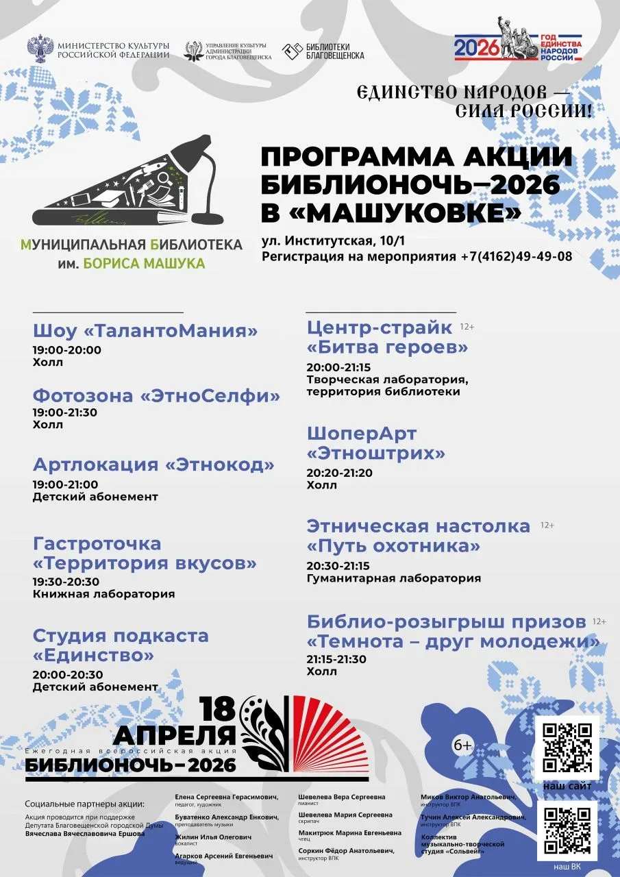 «ТалантоМания», «Эвенки в фокусе», «Чакчак — символ дружбы»: что интересного ждёт благовещенцев на «Библионочи»