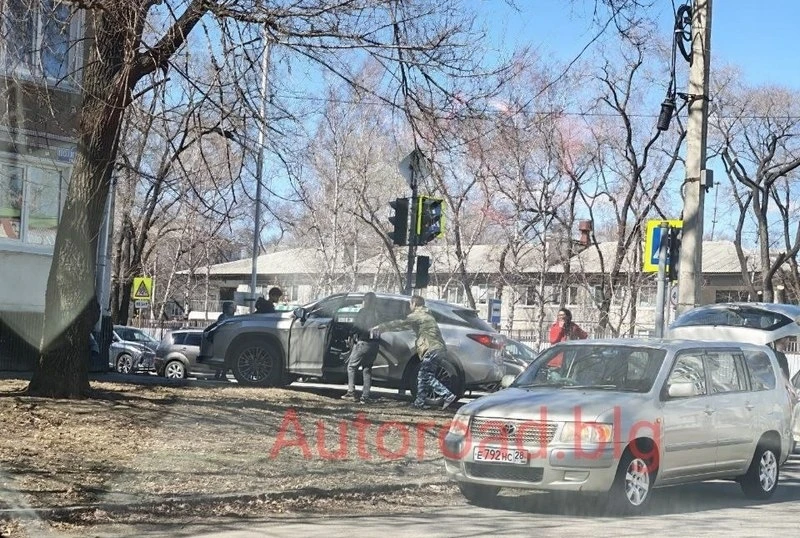 Днем в Благовещенске на Политехнической и Зейской водитель Lexus RX проехала на красный свет, врезалась в Changan Hunter, тот отлетел в Toyota Vitz, после чего водитель Lexus сбила 76-летнего пешехода. Мужчина пострадал.