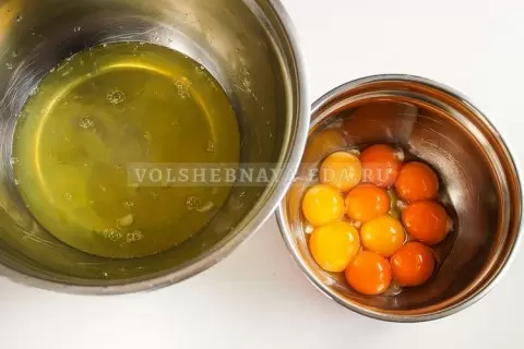 Первым шагом яйца необходимо разделить на белки и желтки. Белки поместить в большую миску, а желтки оставить в меньшей. Взбить белки на невысокой скорости до появления легкой пены.