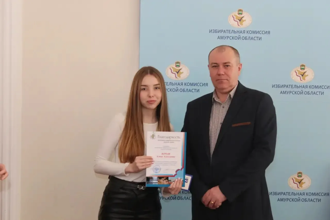 Активистов, благодаря которым ко Дню молодого избирателя в области состоялись большие события, наградили в Амуризбиркоме.