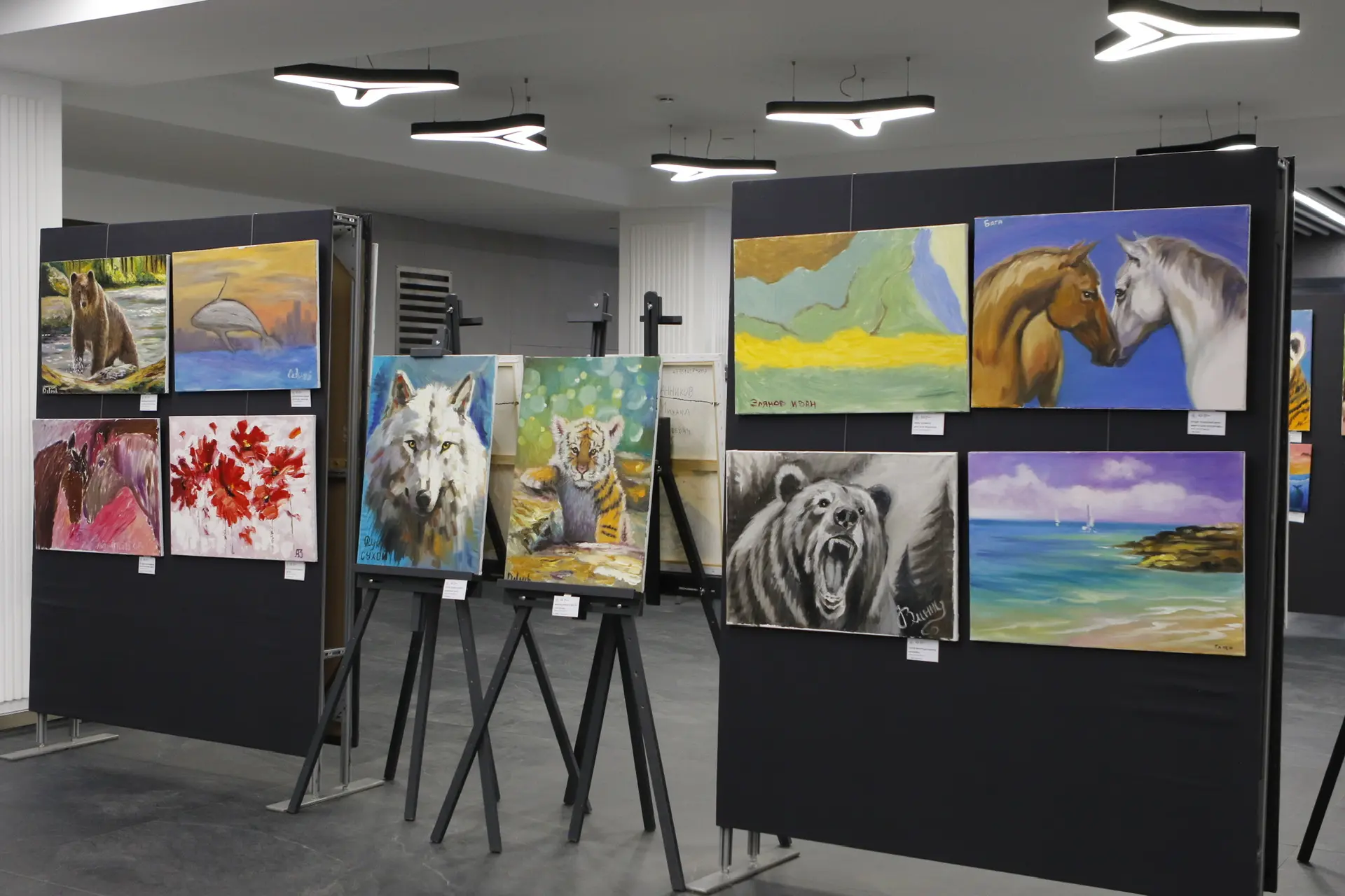 Экспозиция "Цвет жизни", включающая 77 картин за авторством ветеранов специальной военной операции из разных регионов России, является проектом Международного союза художников-анималистов.