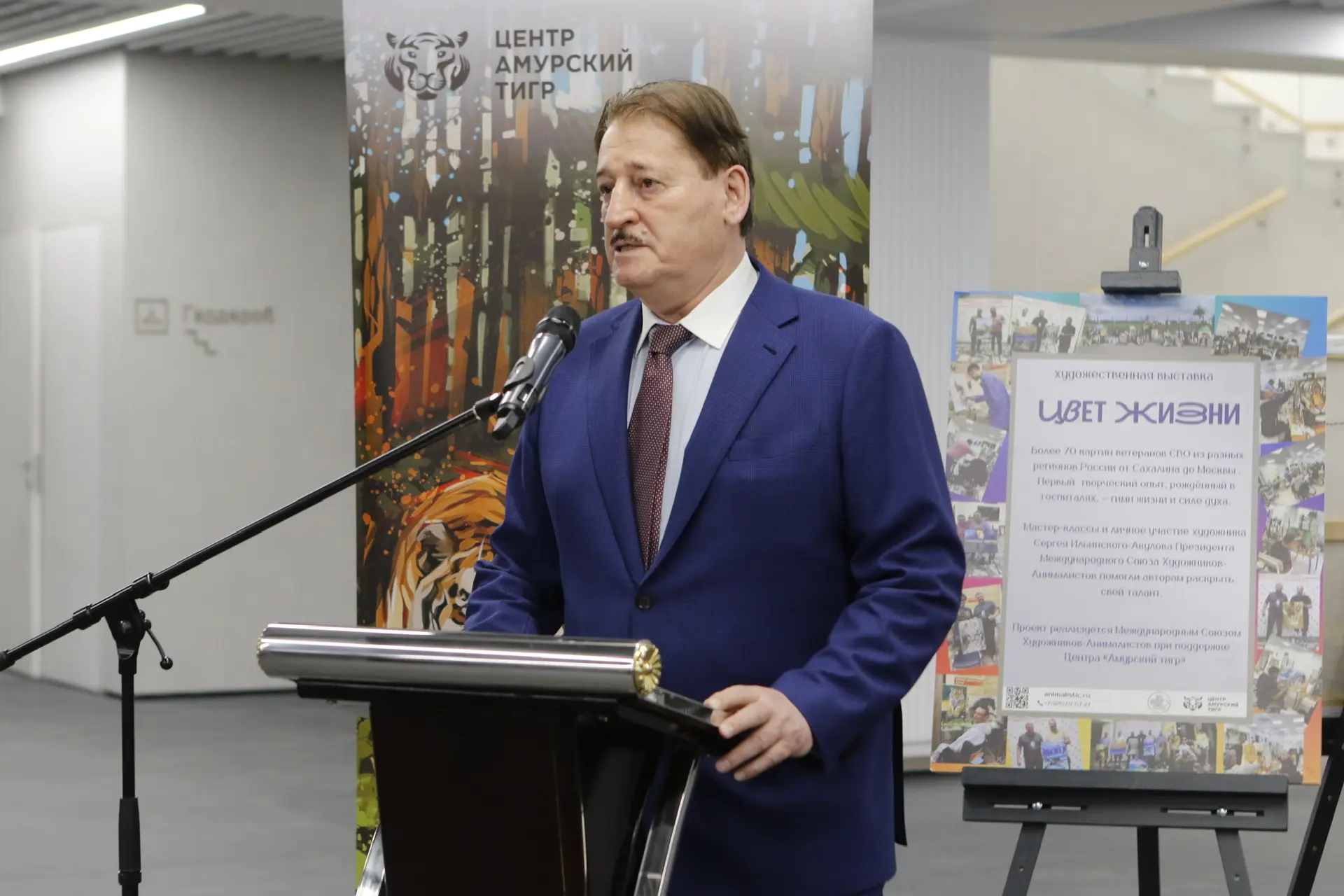 На открытии выставки также выступили участник СВО Денис Солманов и президент Международного союза художников-анималистов Сергей Ильинский-Акулов.