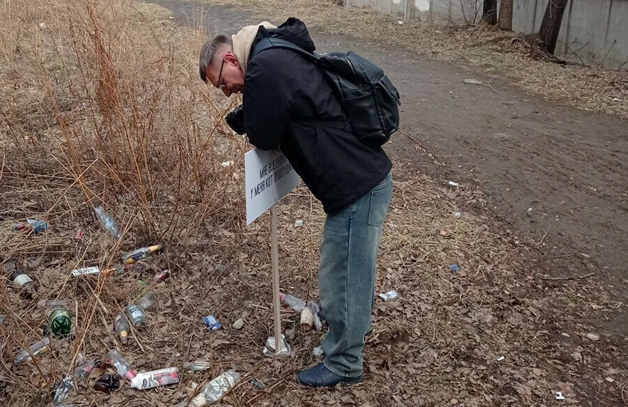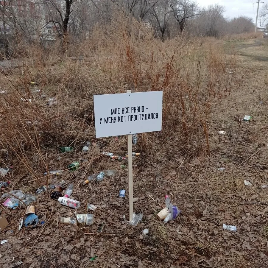 В Благовещенске, на пересечении улиц Шимановского и Красноармейской творческая группа города-галереи «Сигналы» временно установила ироничную табличку с надписью: «Мне все равно – у меня кот простудился».