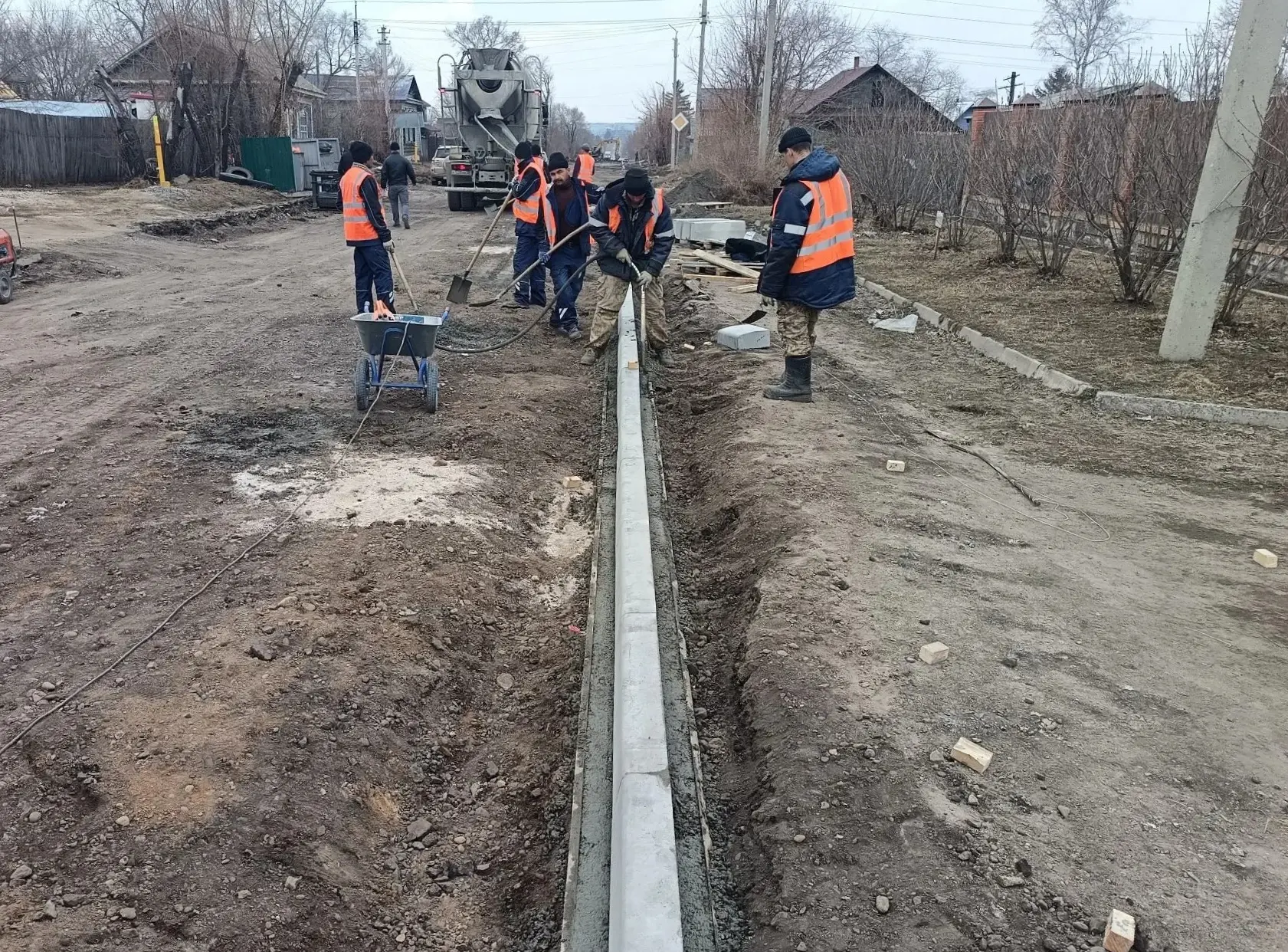 Ремонт начался с улицы Гоголя. На участке от Михайло-Чесноковской до Малиновского, протяженностью 1,6 км, ведутся демонтажные работы, установка нового бортового камня и устройство основания.