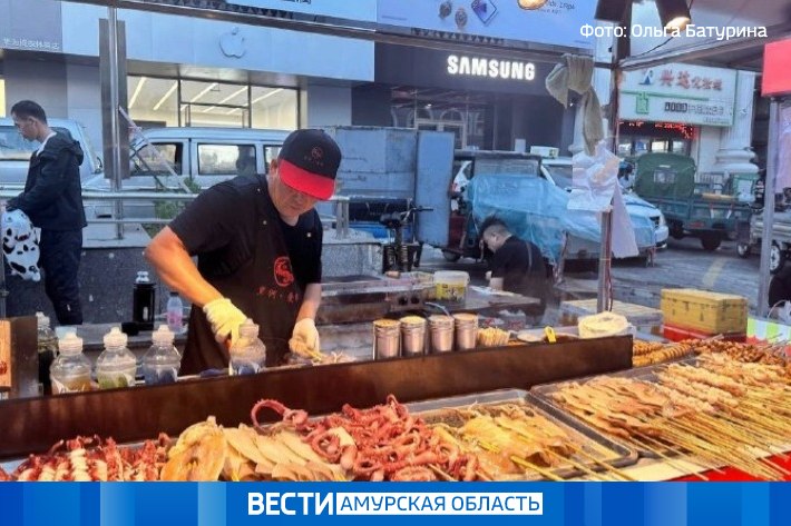 В нашем городе-побратиме Хэйхэ, на том берегу Амура, снова зажглись огни главного ночного рынка. По данным китайской стороны, в этом году ассортимент уличной еды расширили на 30 позиций. Всего на площадке разместилось 280 торговых точек: 130 с едой и 150 с товарами.