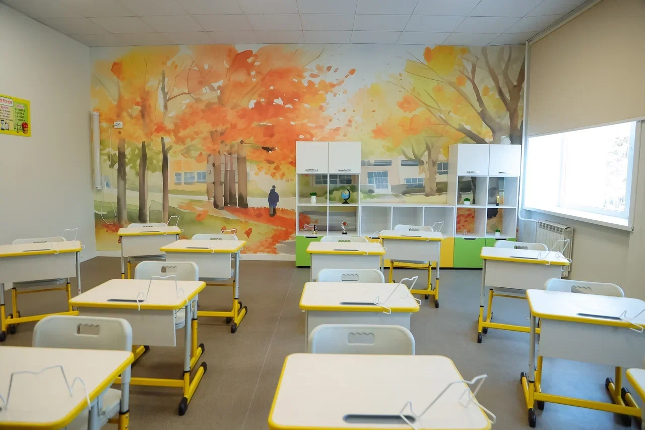 Сдачу объекта наметили на конец апреля. В школе откроют актовый зал — раньше мероприятия проводили в Доме культуры.Также заработает школьное кафе. В библиотеке развернут центр детских инициатив. Для спортзала закупят гимнастические скамьи, шведские стенки, баскетбольные щиты и волейбольные сетки.