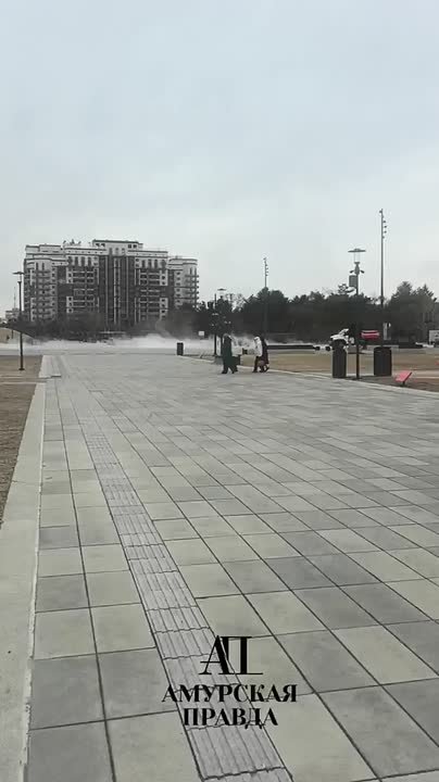 В Благовещенске готовят к запуску самый большой пешеходный фонтан в Евразии. Во время расконсервации специалисты промывают трубы и проверяют работу насосных станций.