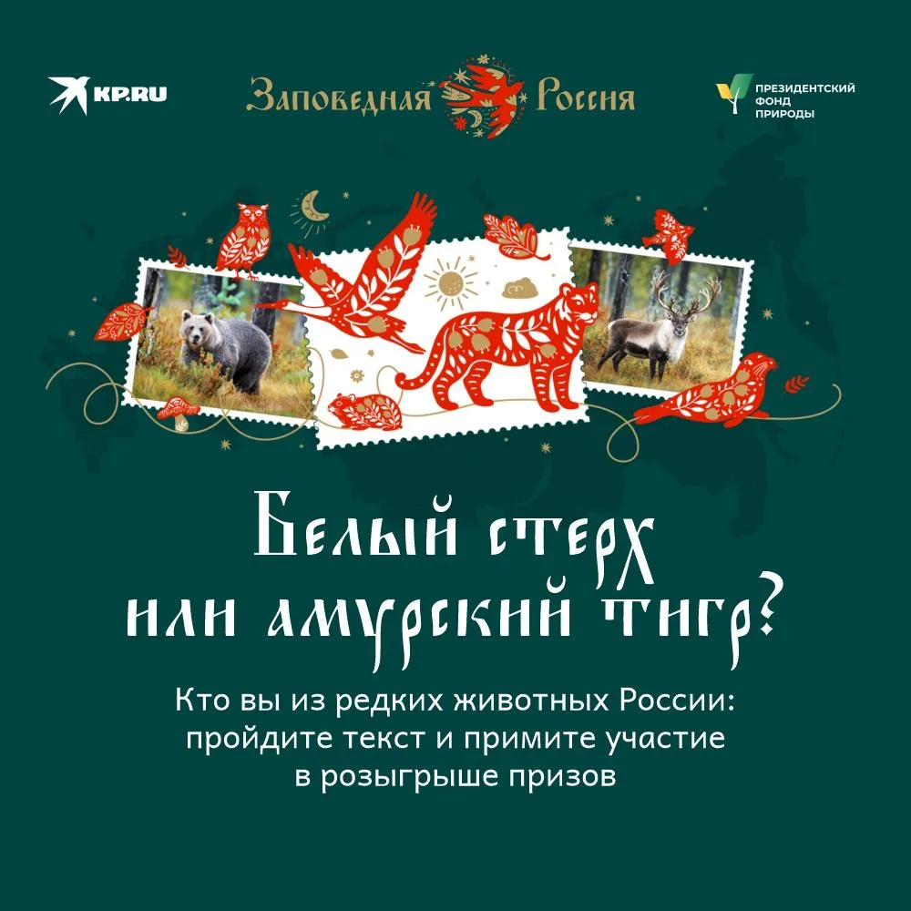 Но хватит гадать просто так! Ответьте на 8 вопросов и узнайте точно, на кого из уникальных зверей и птиц нашей страны вы похожи.