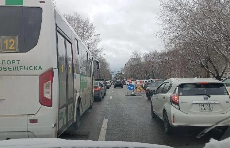 И непогода, и перекопы: центр Благовещенска сковали огромные автомобильные пробки