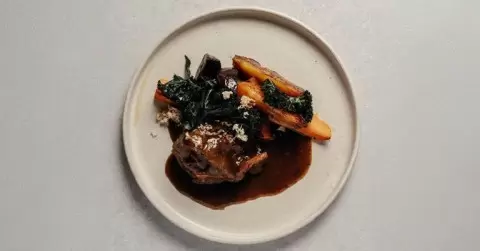 - Блестящие томленые щечки с зимними корнеплодами (1690 руб.) поражают ароматом грибов и тают во рту;