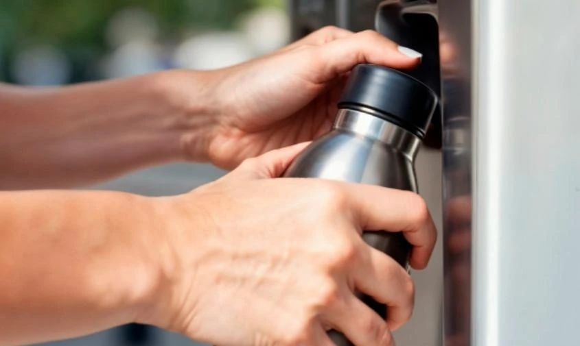 Старайтесь не касаться горлышком емкости крана водомата. Это поможет избежать попадания бактерий внутрь.