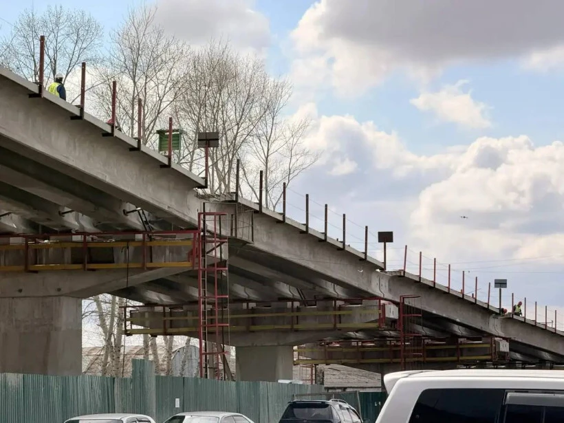Сейчас завершается устройство основной части пролетов. Уже смонтированы 10 пролетов по 24 метра из 15 запланированных. Параллельно на новом путепроводе обустраивают проезжую часть.
