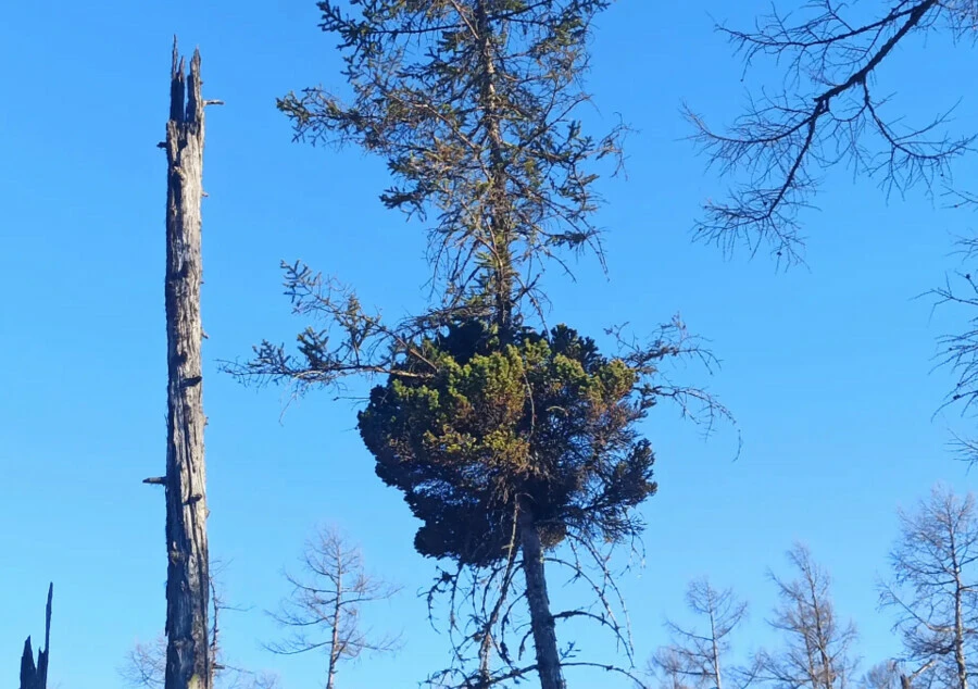Специалисты лесничества заметили странную густую крону в глубине густого леса. «Мутант» появился на ели аянской. Он похож на дерево на дереве.