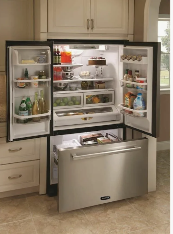 - French Door: модель с двумя верхними дверями и выдвижной морозилкой внизу упрощает доступ к часто используемым продуктам.